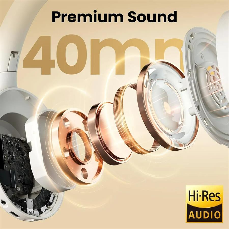 Calidad de Sonido: Certificado con Hi-Res Audio, ofrece una calidad de sonido de alta fidelidad, gracias a sus drivers dinámicos de 40 mm que proporcionan agudos claros, medios ricos y graves profundos.