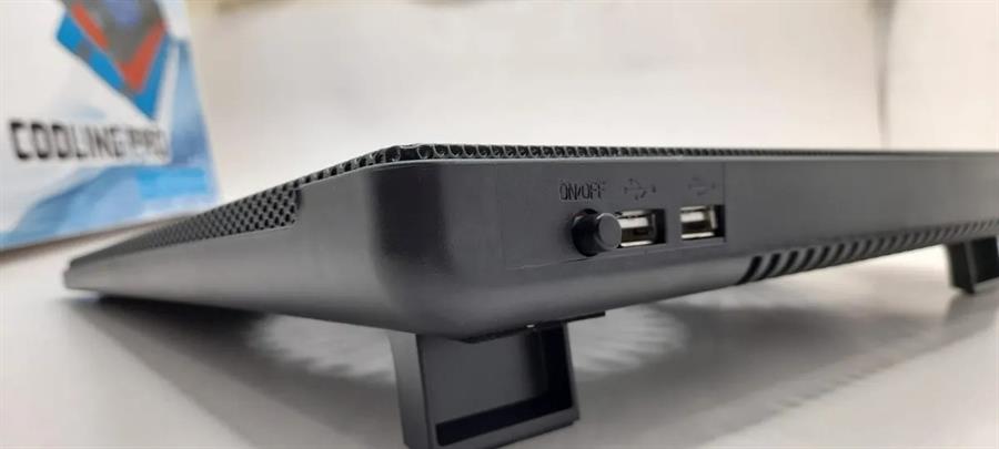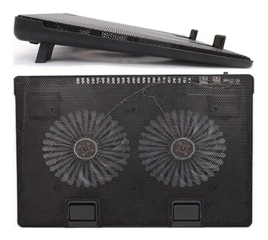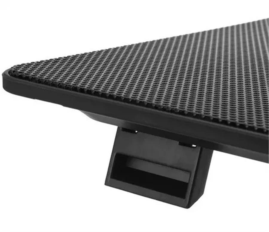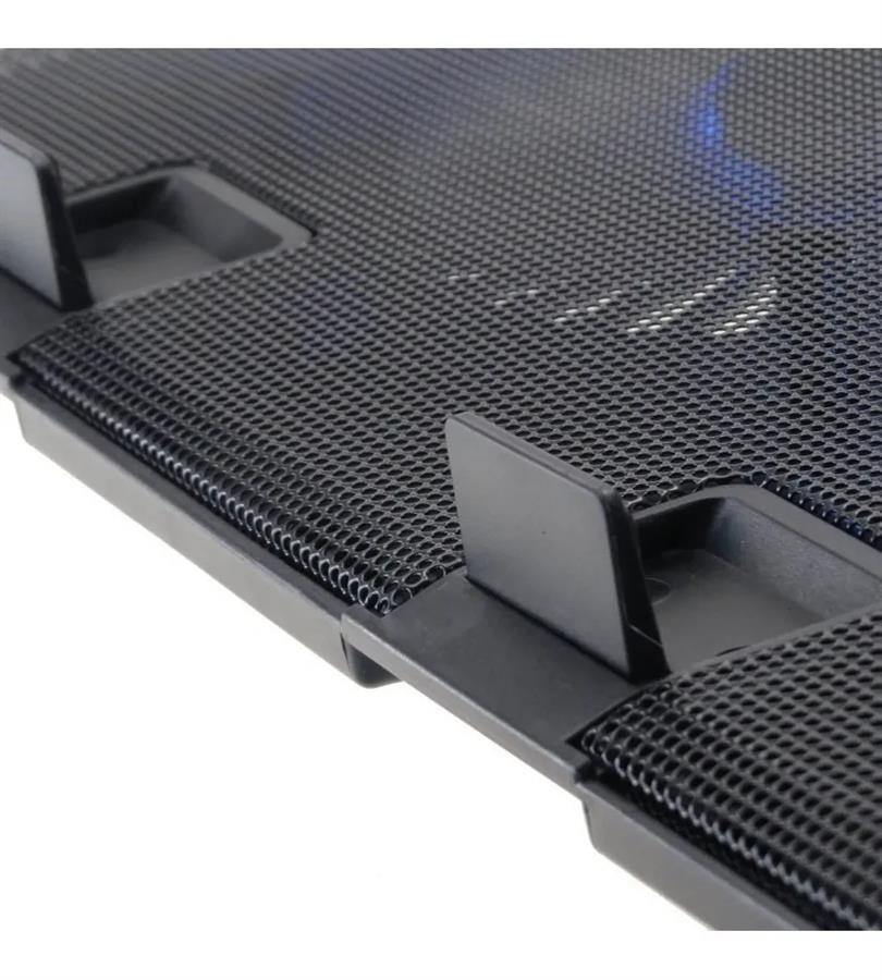 Dos grandes ventiladores con doble LED azul centrifugado silenciosamente a 1200 ± 10% RPM para extraer el aire fresco de la parte inferior de esta Laptop Cooling Pad