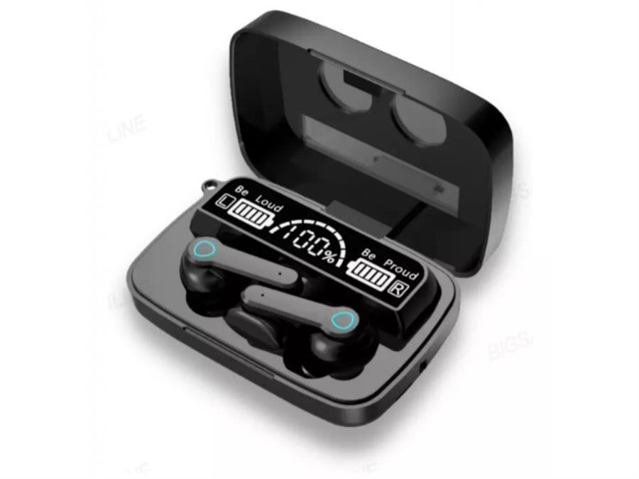 •Display digital con indicador de porcentaje de carga de caja cargadora y auriculares