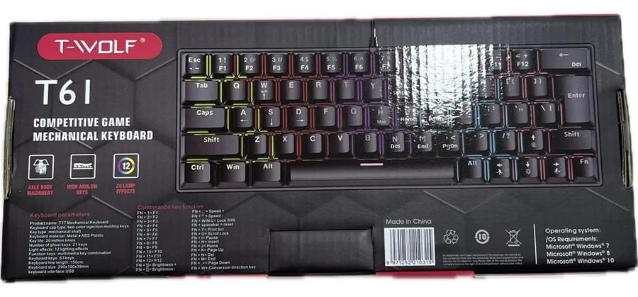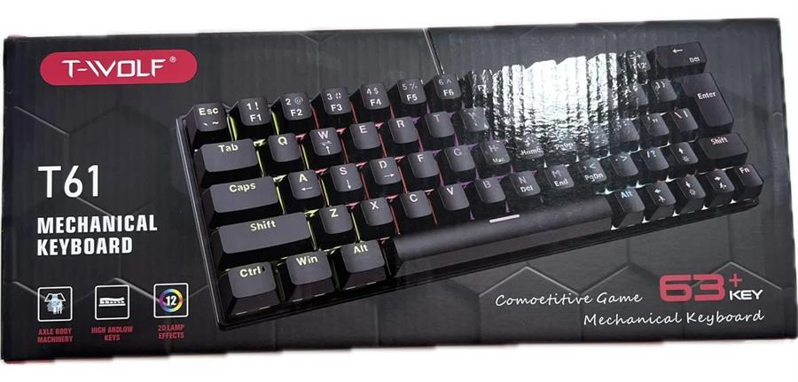 Teclado mecánico para juegos T-WOLF T61, con cable USB, retroiluminado y colorido, de 61 teclas.