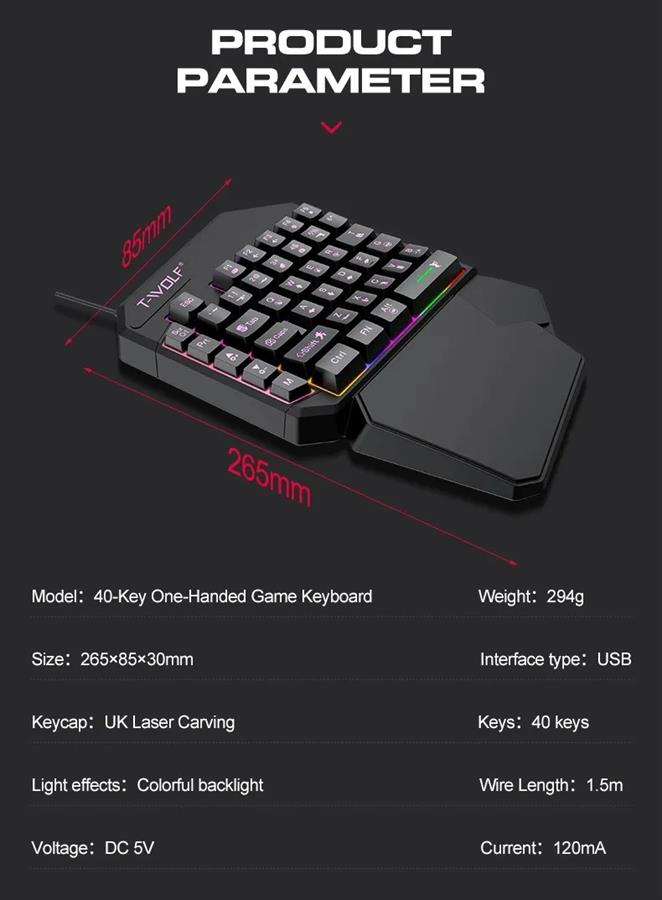 Mini Teclado RGB estilo E-sports para juegos con una sola mano T-Wolf TF900 T19